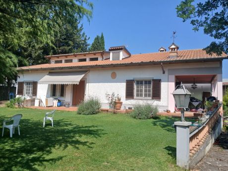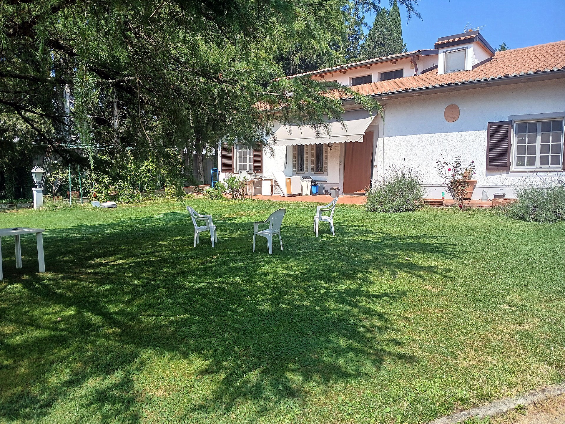 In località Sambuca in Val di Pesa, proponiamo villa indipendente circondata da giardino di proprietà di 650 mq accessibile con passo carrabile. L'immobile è diviso internamente in 5 vani al piano terra di circa 140 mq calpestabili oltre a mansarda di ulteriori 70 mq sfruttabili con ottima altezza e taverna/box auto al piano seminterrato di oltre 150 mq. Al piano terra l'appartamento è composto da ingresso, soggiorno di 42 mq con porta finestra che si apre sul giardino e un'altra porta finestra che immette su una terrazza abitabile, grande cucina con accesso alla terrazza abitabile, disimpegno che porta alla zona notte dove si trovano 2 camere matrimoniali e una camera media, doppi servizi finestrati. Attraverso una scala interna si accede al piano sottotetto dove si trova un terzo servizio, un cucinotto e due ampie stanze ad uso mansarda. Il tetto è stato rifatto recentemente e coibentato per garantire un efficace isolamento termico. Dal piano terra attraverso una scala si può accedere anche al piano seminterrato dove attualmente si trovano un box auto e due grandi cantine, per l'ampia metratura è possibile creare una taverna o locale palestra, laboratorio ecc.
