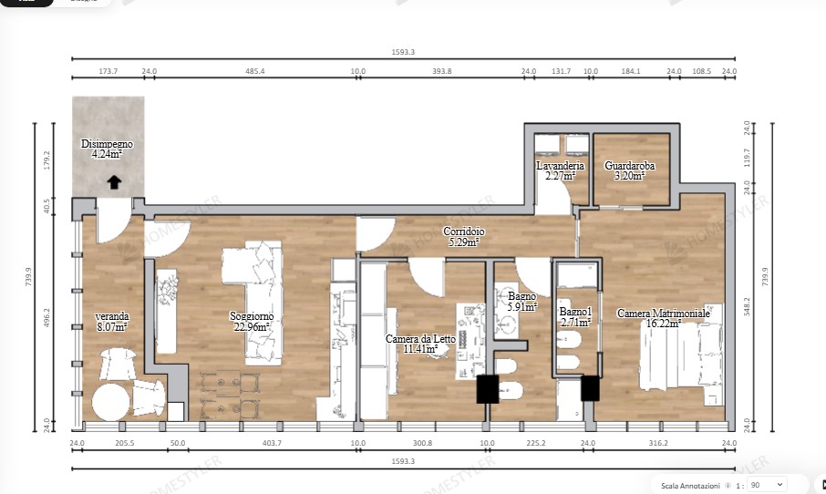 Via dell'Orcagna, in fase di completa e accurata ristrutturazione, proponiamo al primo piano con ascensore di bel condominio a mattoncini un appartamento così composto: ingresso, ampia zona giorno con cucina a vista, camera matrimoniale, grande bagno finestrato, seconda camera matrimoniale con cabina armadio e bagno en suite e ripostiglio/lavanderia. Portoncino blindato, pavimentazione in listoni di parquet rovere, le porte interne saranno tamburate in laminato di colore bianco, infissi a taglio termico in profilato alluminio color noce e doppio vetro, rivestimento dei bagni in grès porcellanato. L'appartamento è in fase di realizzazione con la possibilità da parte dell'acquirente di modificare la scelta dei materiali. Zona residenziale vicina a tutti i principali servizi. Le foto dell'annuncio sono puramente a scopo indicativo non corrispondono all'appartamento ma sono render o si riferiscono ad appartamenti già ultimati.